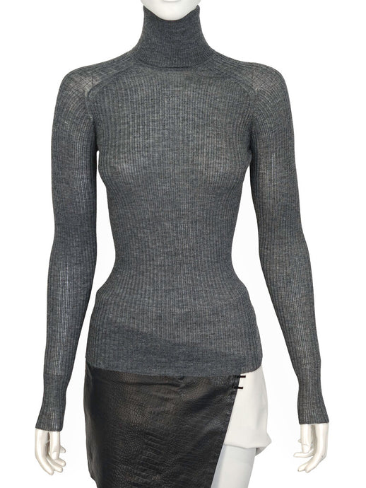 Vintage Roll-Neck Grey Cashmere Jumper Size S