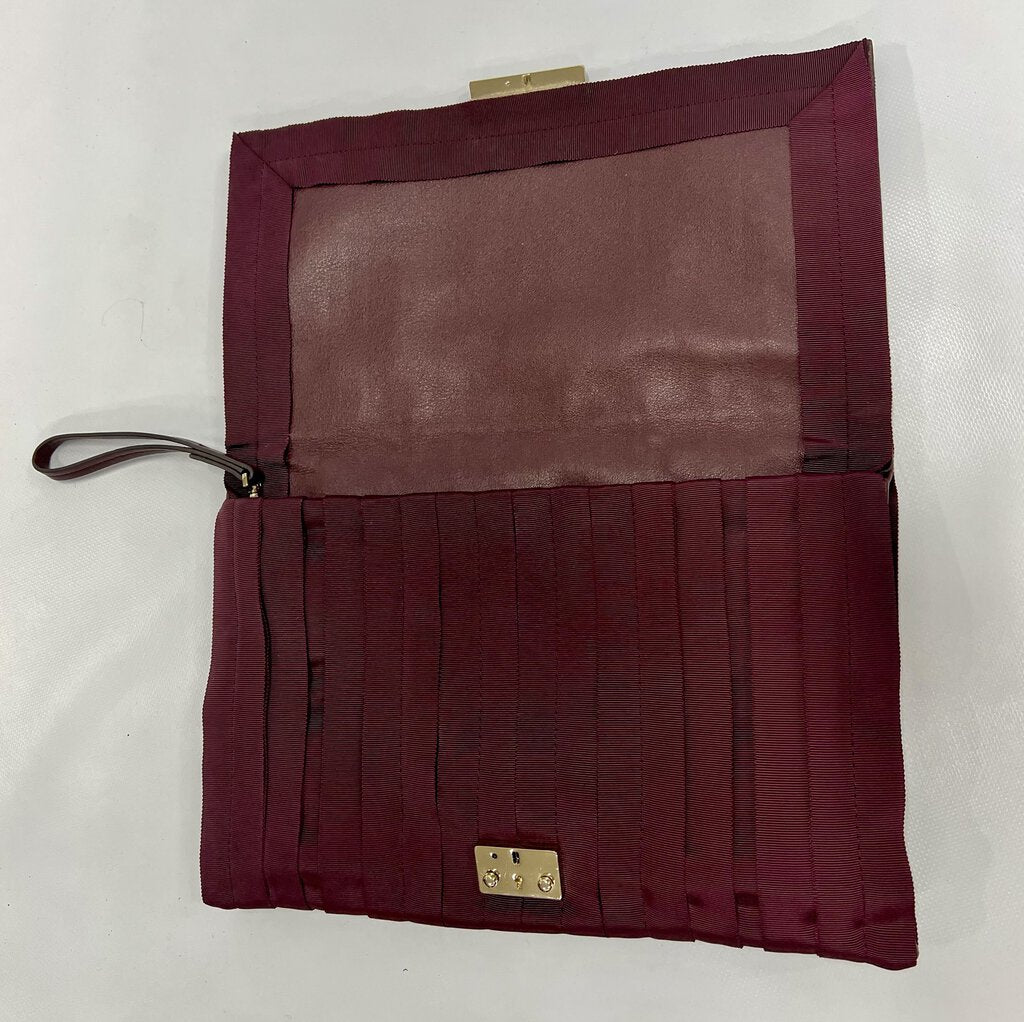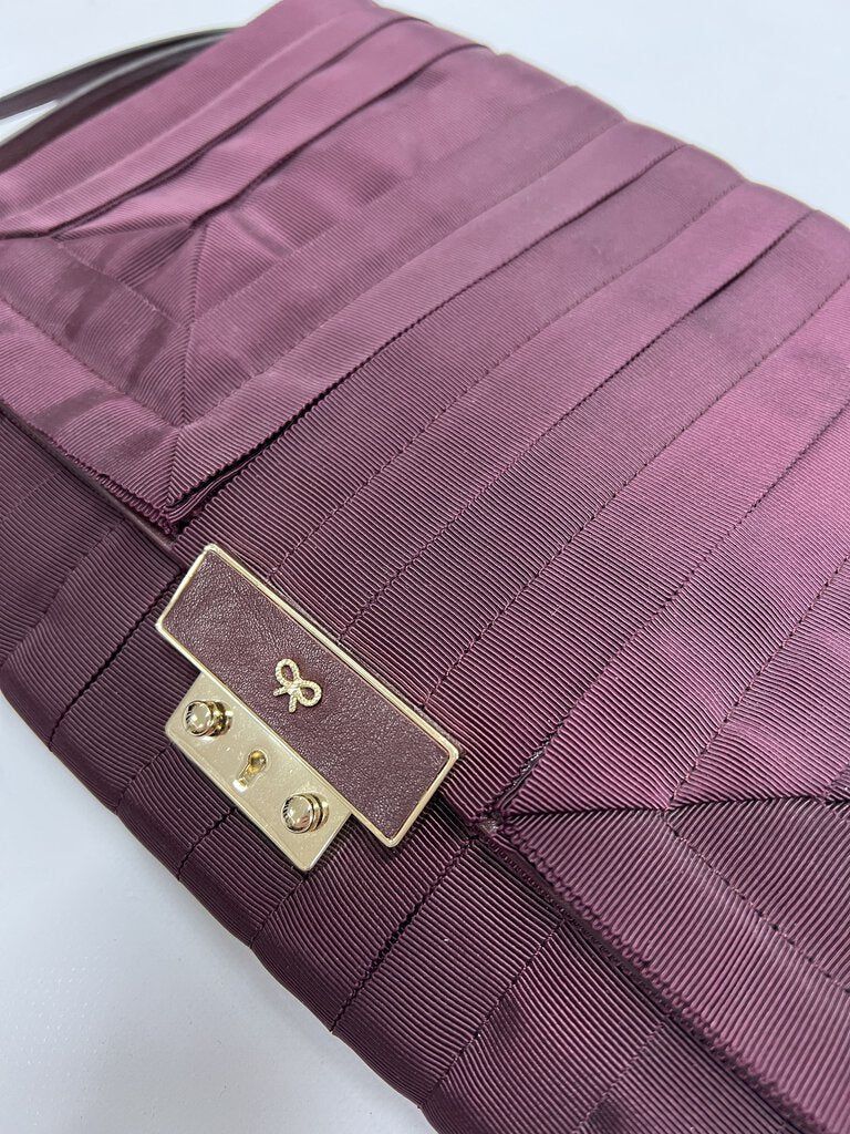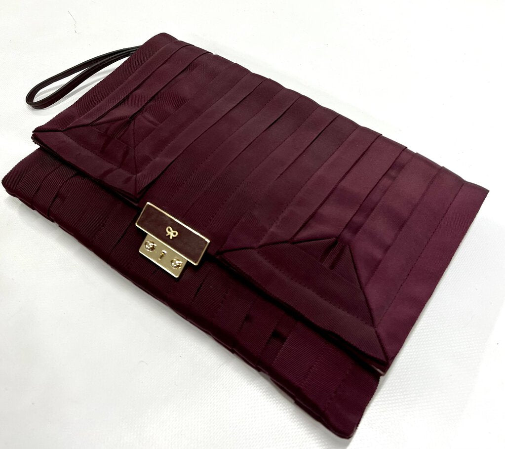 Dark plum leather & fabric clutch bag by Anya Hindmarch