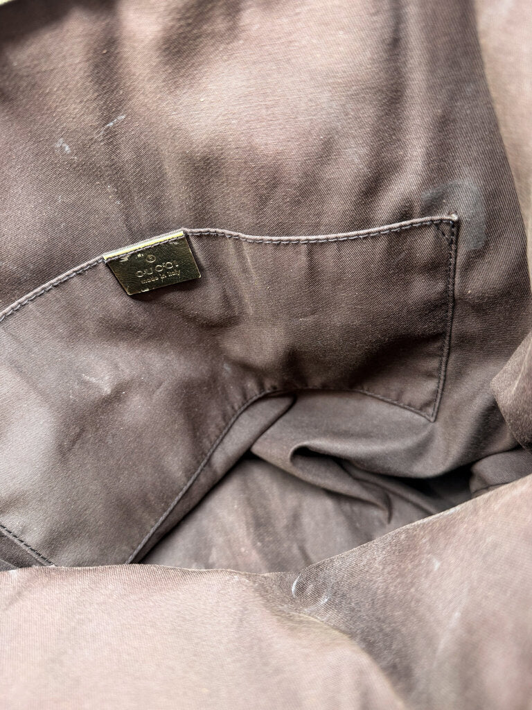 This large canvas tote by Gucci reflects the house’s enduring iconography. The GG monogram canvas and signature Web stripe combine heritage and practicality, making it a strong everyday carry option. It is a functional piece that retains recognisable design without excess.