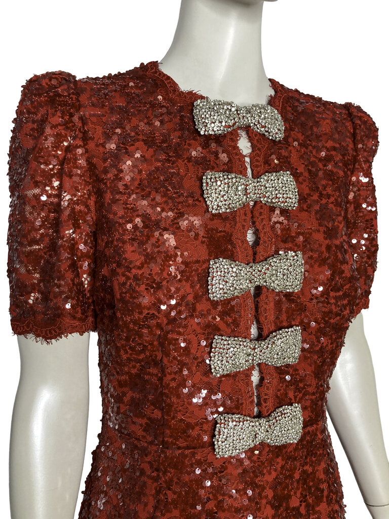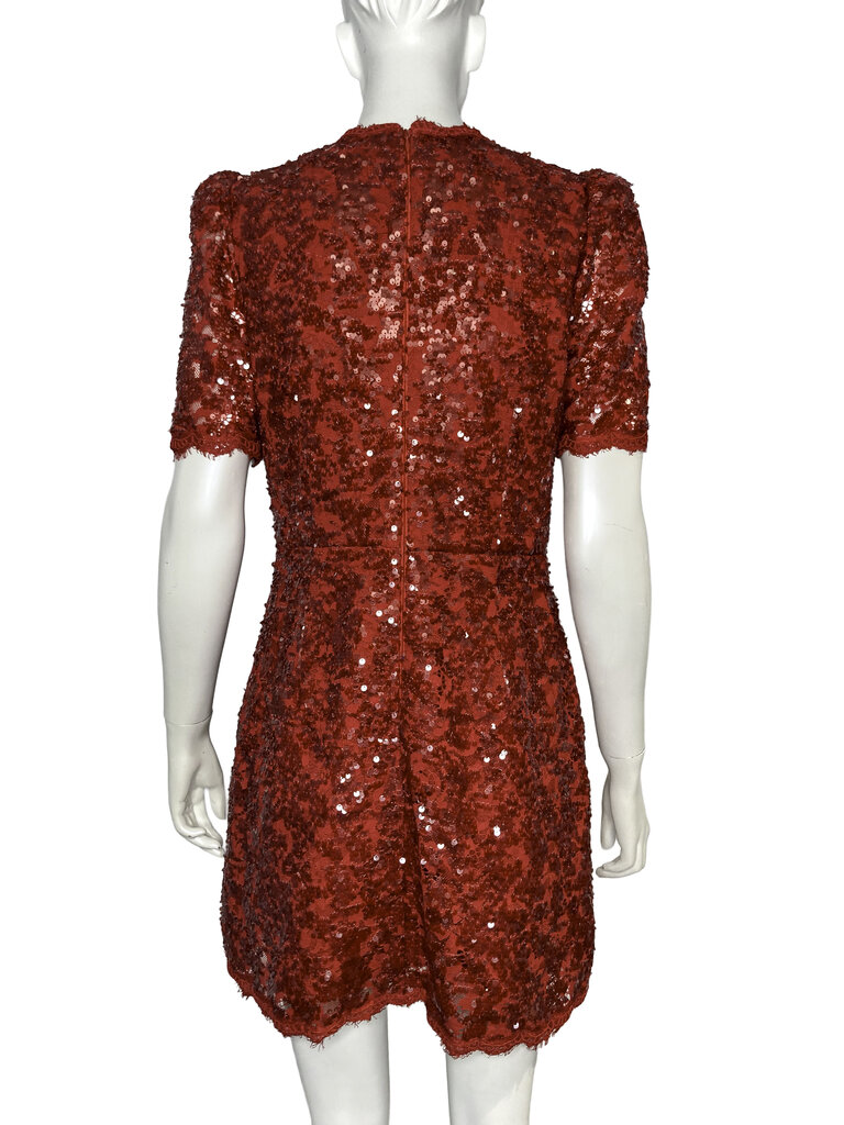 Vibrant Cherry Red Lace and Sequin Mini Dress