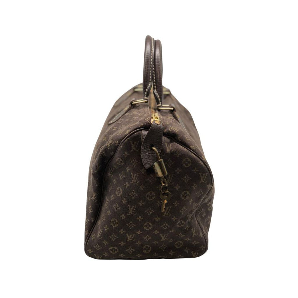 Description: Mini Lin Speedy Bandouliere 30 Gold-Tone Hardware Rolled Handles & Single Adjustable Shoulder Strap Leather Trim Embellishment Canvas Lining & Dual Interior Pockets Zip Closure at Top. Comes with Dust Bag.