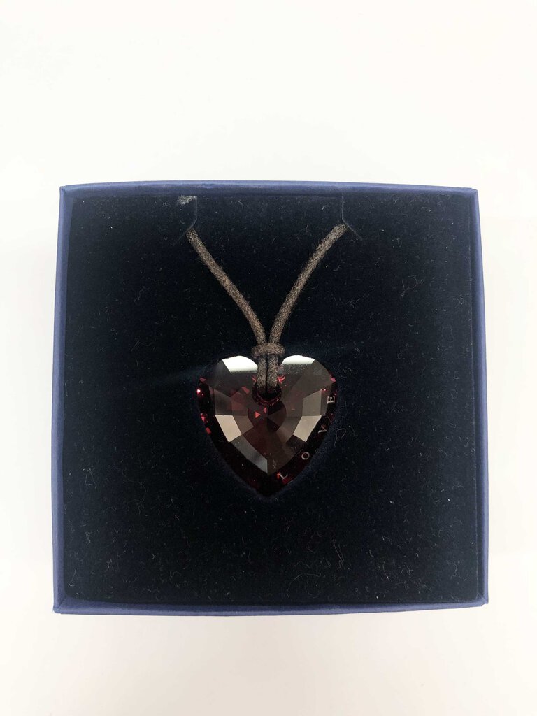 Heart shaped crystal multi facet on leather rope comes with gift box.